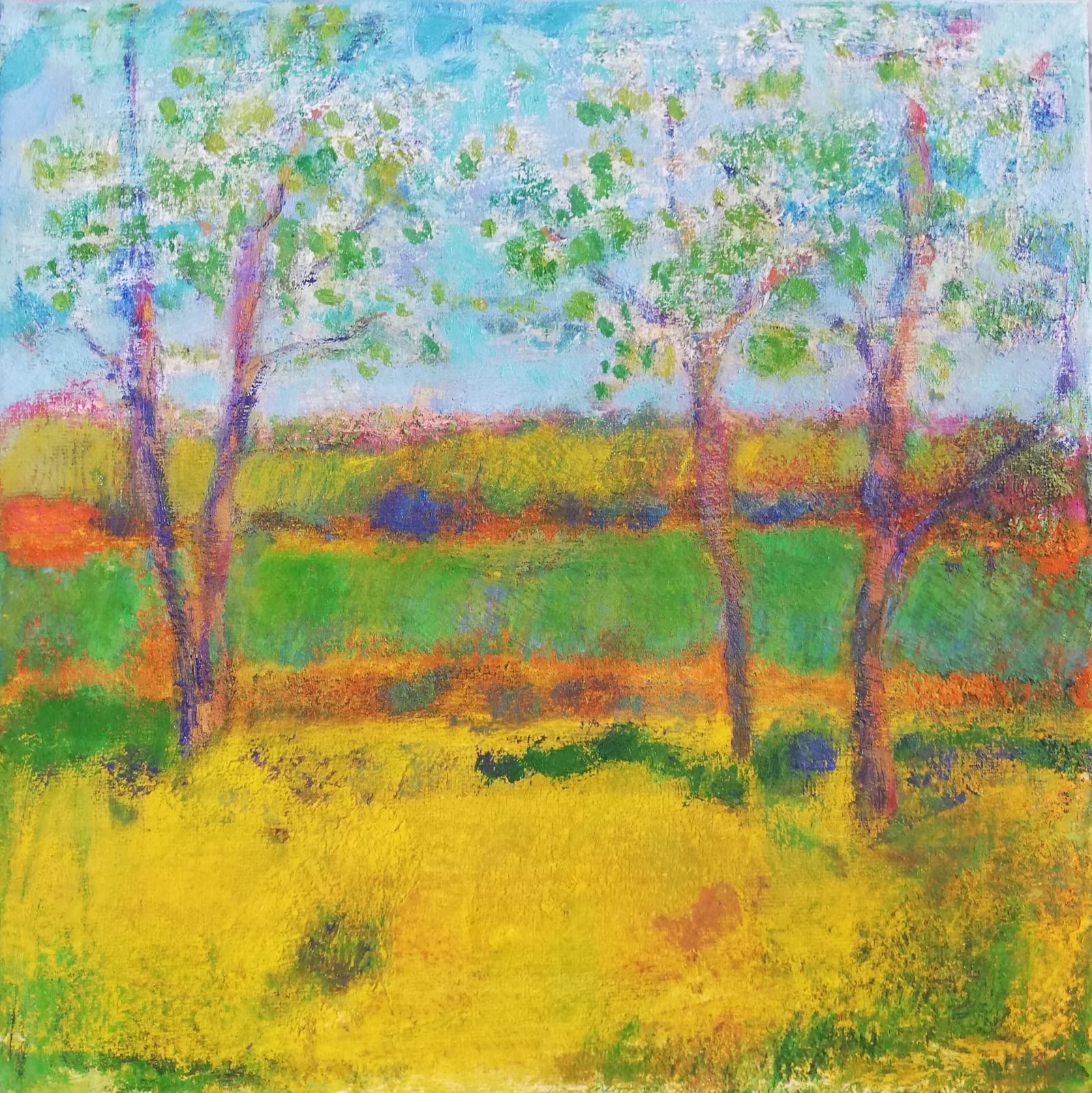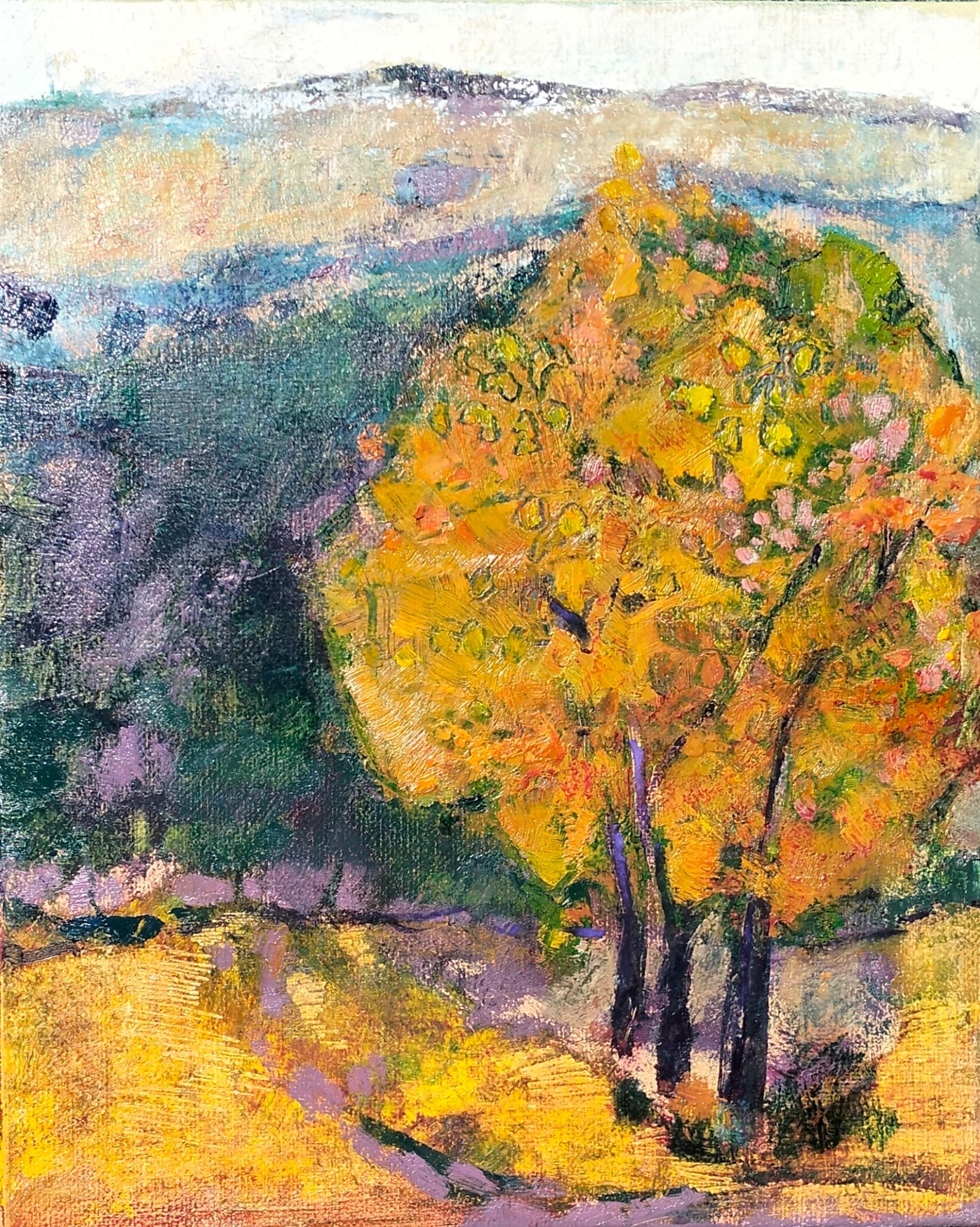 Desde mis primeros pasos como pintora, he buscado expresarme mediante la naturaleza, no sólo como reflejo físico de un lugar, sino como paisaje emocional, memoria y viaje interior