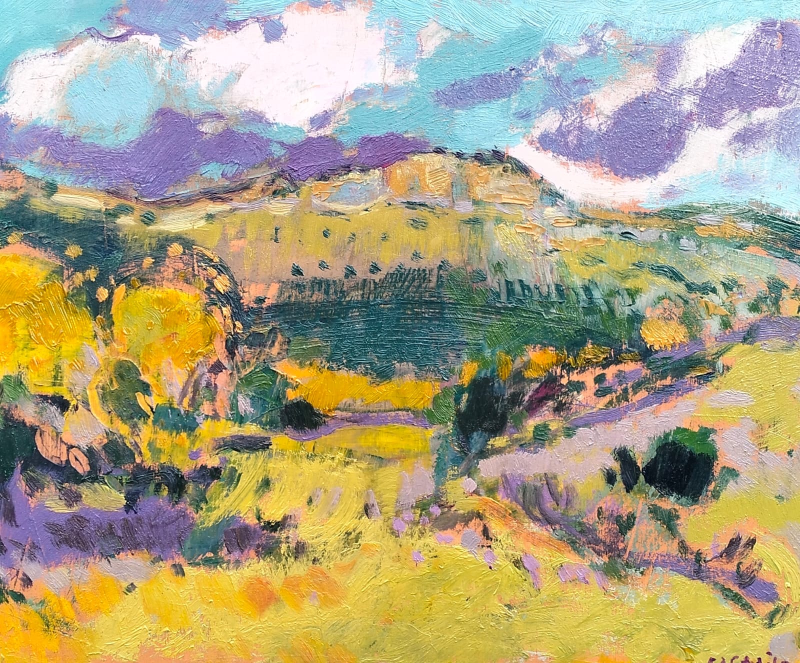 Mis obras no son meros apuntes de lugares, sino cartas visuales, emociones pictóricas escritas desde la ribera de un río, la cumbre de un monte, de una fábrica o de la orilla del mar. Son territorios interiores y externos, memoria y tiempo. En ellas, cada trazo y color se convierten en registro material e intangible, que me acompaña y expreso en el camino de la vida.