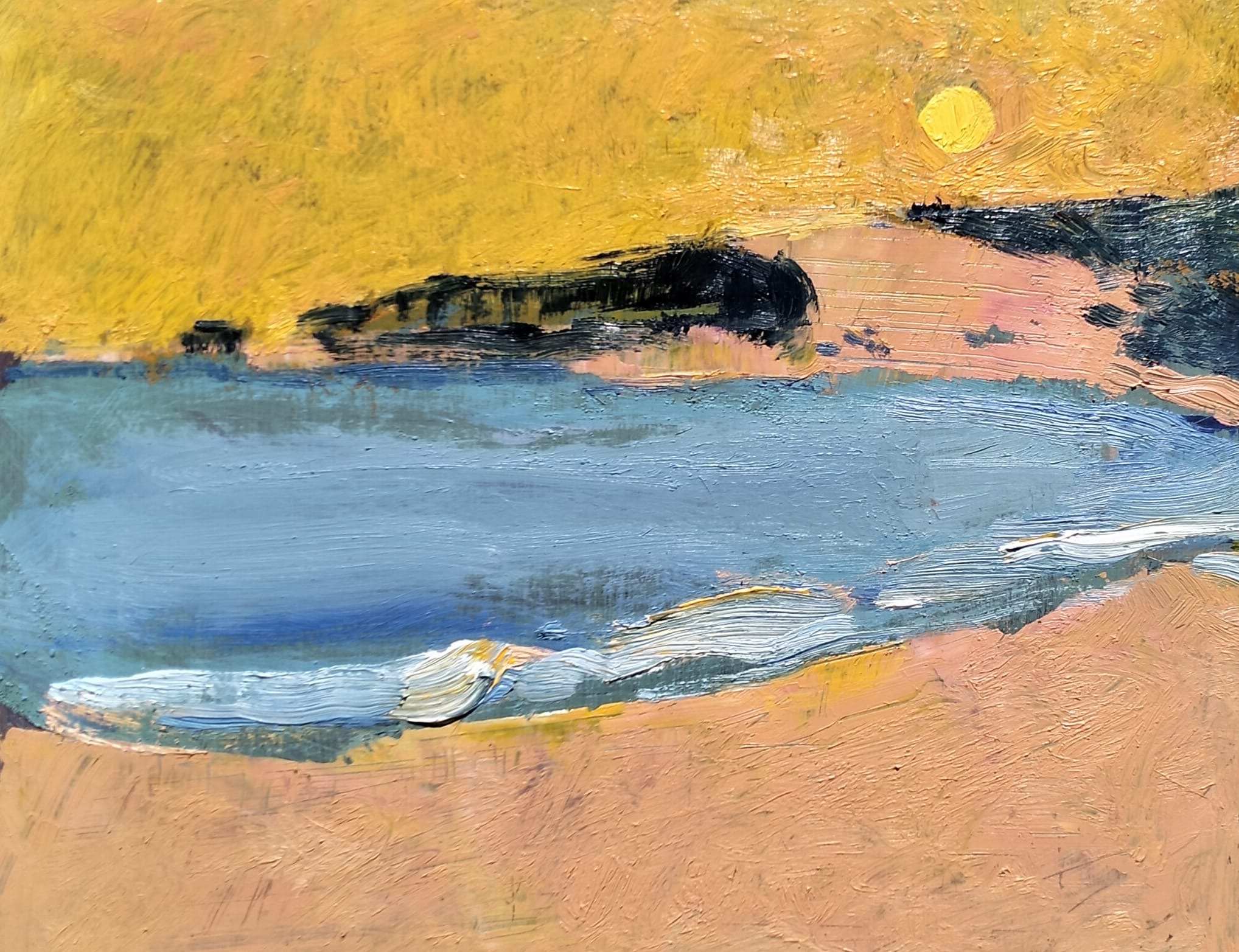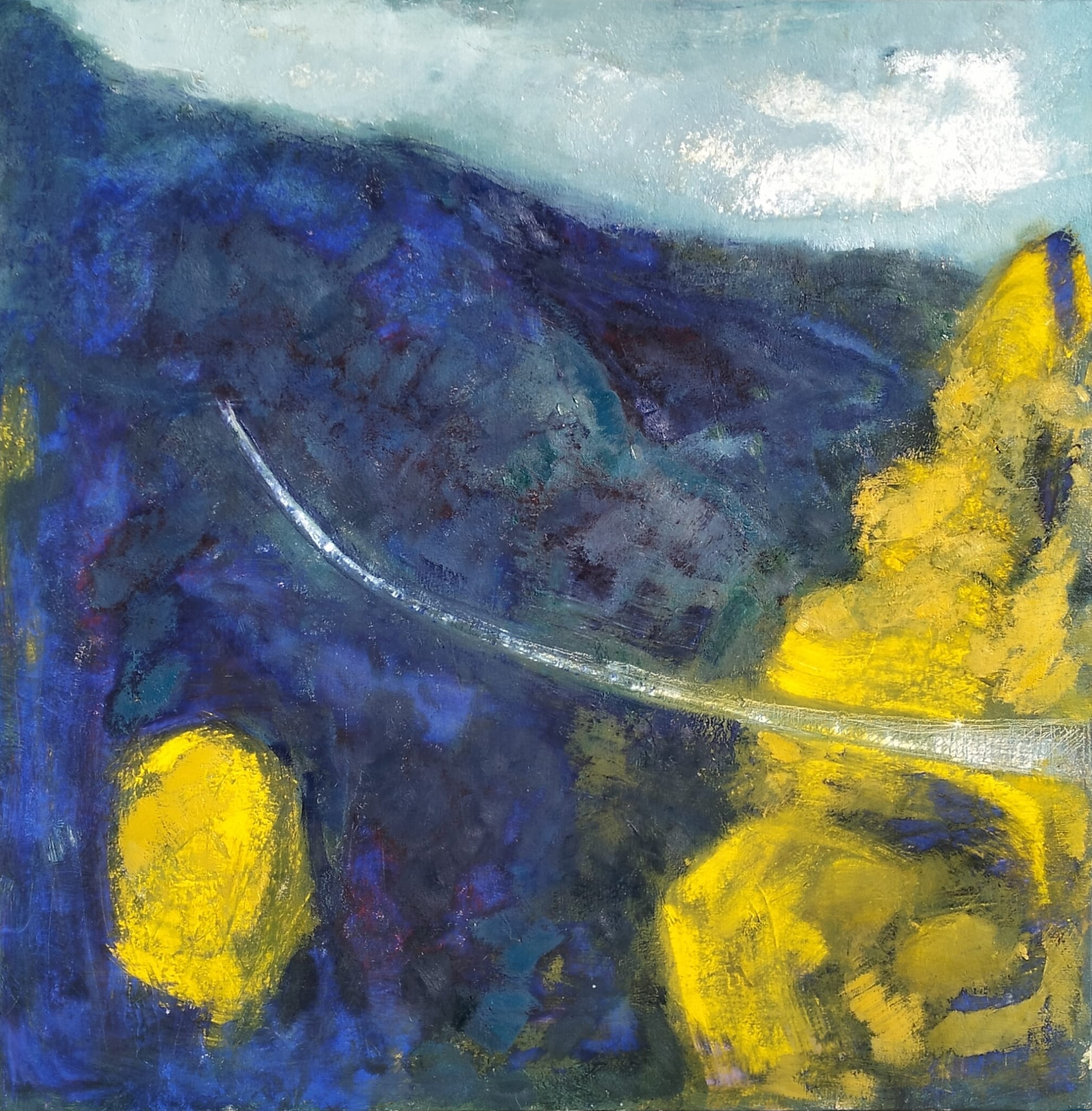 Mi práctica artística se basa en la experiencia directa del paisaje: trabajar al aire libre, viajar y sumergirme en la geografía, el clima y la luz de cada lugar. Esto me permite crear una conexión profunda entre el paisaje vivido y la abstracción de la pintura, un camino de reducción que busca lo esencial.